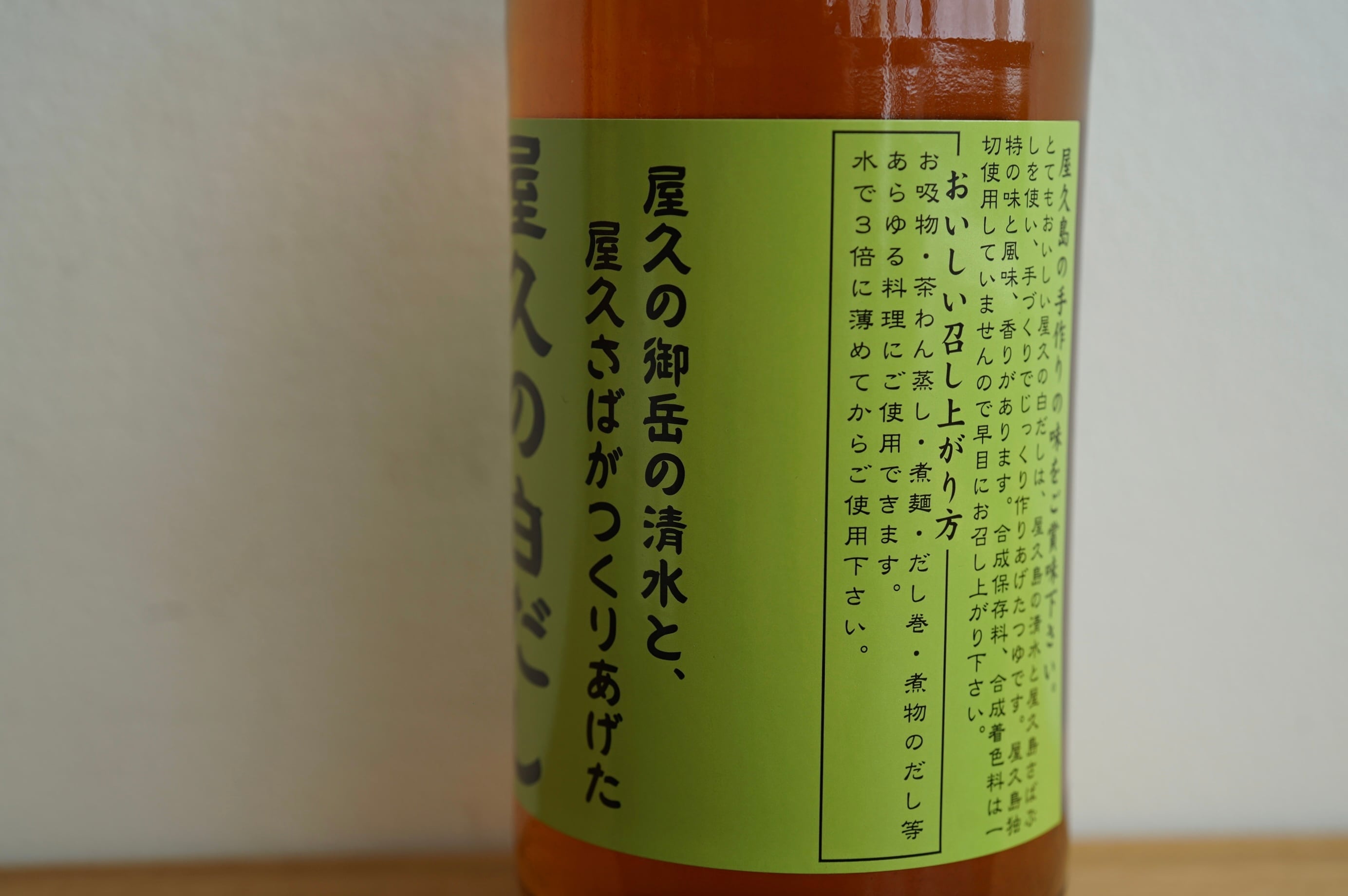 その清冽な水と、屋久島近海で獲れた「屋久サバ」の節が出会い、ひと瓶の白だしになりました。